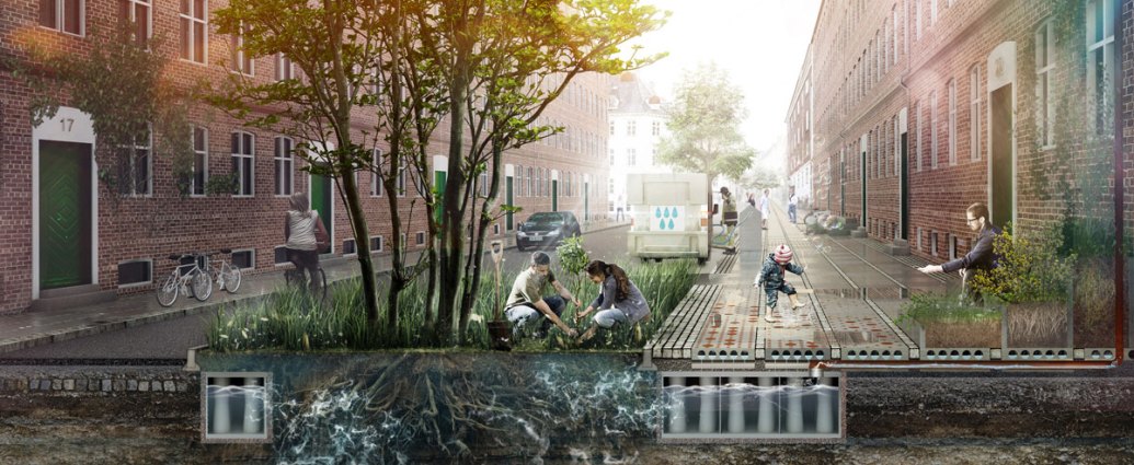 Adapting to climate change, says the group, “is not secured with one solution, but through a range of many solutions. The project is seen largely as an inclusive solution to attain synergy across roads, bike paths, city squares and urban nature.”
