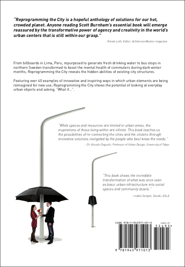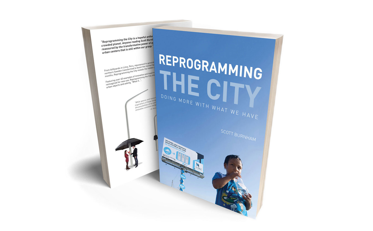 Reprogramming the City is an overview urban reuse and repurposing – innovative ways existing urban infrastructure and other elements are being reused and repurposed for new use in cities around the world. From billboards in Lima, Peru, that now generate fresh drinking water to bus stops in northern Sweden transformed to boost the mental health of commuters during dark winter months, Reprogramming the City reveals the untapped potential of tactical urbanism and repurposing urban objects for new use to improve life for urban residents.